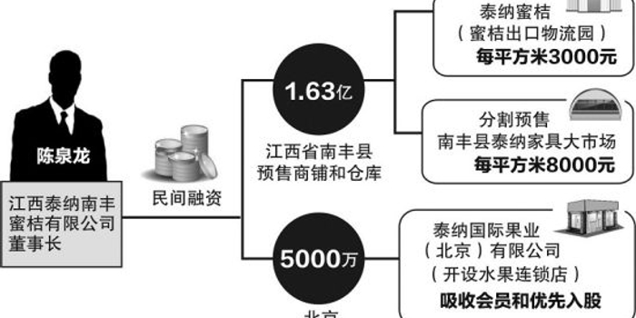 而黄良群向《每日经济新闻》记者透露,泰纳蜜桔高管黄兴才向当地政府提交的材料显示,陈泉龙通过泰纳家具和泰纳蜜桔在南丰的融资金额为1.63亿元。