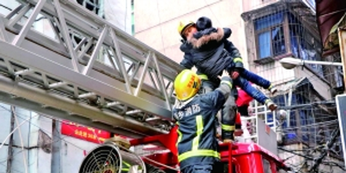 2月26日,消防队员在事故现场救出一名孩子。新华社发