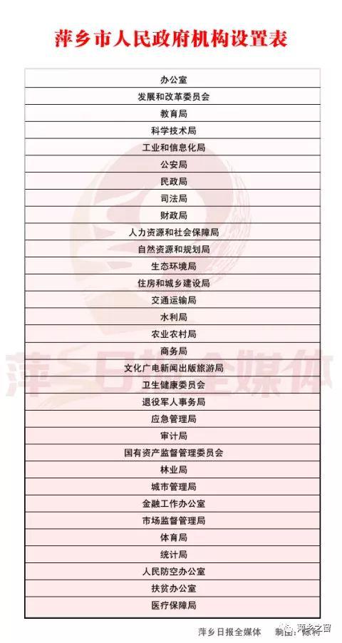 随着各地陆续召开机构改革动员大会,各地《机构改革实施方案》也陆续公布。“江西组工微讯”从1月3日起,陆续编发了南昌市、九江市、鹰潭市(点击可跳转阅读)等三个设区市以及共青城市、贵溪市两个县级市的机构改革方案。今天,小微君将为您带来萍乡市和南昌市西湖区的改革实施方案。两地的《实施方案》各有特色,萍乡市设立政务服务管理局,南昌市西湖区设立现代服务业发展局,一起来看看吧!