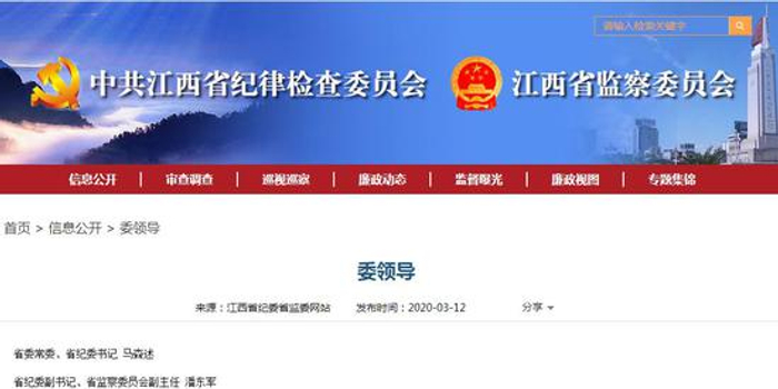 摘要: 近日,江西省纪委监委网站“委领导”一栏更新消息,马森述已出任江西省委常委、省纪委书记。