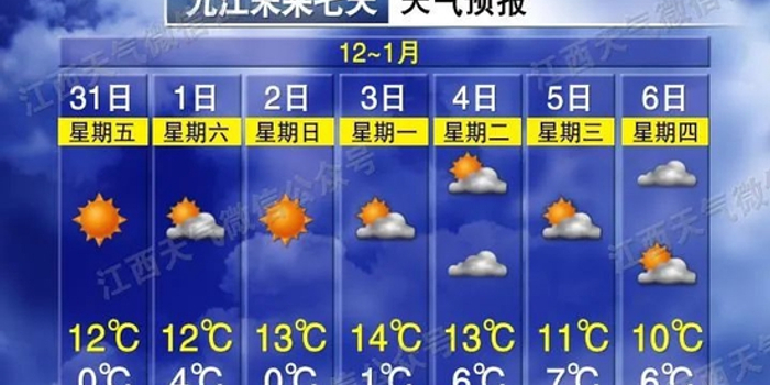 赣中、赣南多云间晴天,赣北晴天间多云;早晨局部地区有雾。