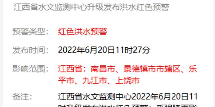 江西发布洪水红色预警!影响南昌、景德镇、九江、上饶