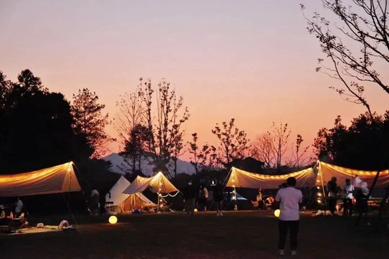 鹤鸣溪谷还备好了星空露营帐篷、野趣烧烤、小龙虾、啤酒、户外电影、KTV等装备,无论你是想在万亩星空下看一场电影,还是和三五好友享受一场户外野餐,都能在这里,找到最美好的实现方式。