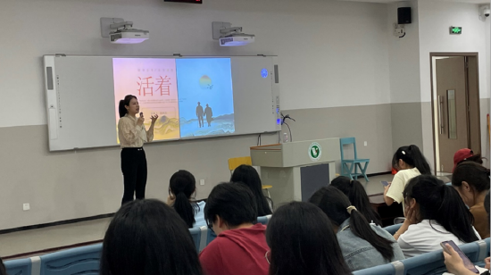 刘尚正老师分享的书籍是余华著作的《活着》,她将自己在这本书中的所想所感进行了阐述:“《活着》是‘一面人性的镜子’,面对着坚强的福贵、隐忍的家珍、勤劳的凤霞、乐观的有庆,让我们反思自己的品性。那个年代的困难、贫乏更让我们珍惜现在的充裕生活。”她表示,生命中其实是没有幸福或者不幸的,生命只是活着,静静地活着,就像作者余华所说“人是为活着本身而活的,而不是为活着以外的任何事情而活的”。