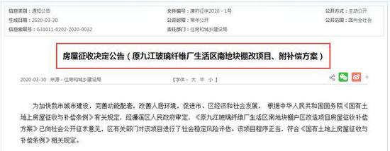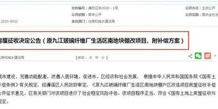 3月31日,濂溪区政府网站发布了关于《原九江玻璃纤维厂生活区南地块棚改项目》和《十里片区锦城嘉园北地块棚改项目》征收决定的公告,内容如下: