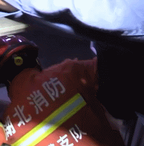 被卡男童脚下悬空仅靠头部支撑。