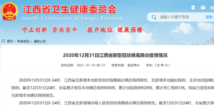 关注2020年12月31日0-24时,江西省无新增本地新型冠状病毒肺炎确诊病例报告,无新增本地疑似病例,无本地住院确诊病例。截至12月31日24时,全省累计报告本地确诊病例930例,累计出院病例929例,累计死亡病例1例。我省已连续308天无新增本地确诊病例报告。