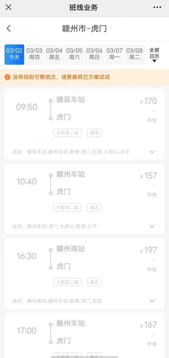 受目前东莞地区疫情防控影响,江西通达汽运有限公司从2022年2月28日起暂停上犹、唐江、南康—虎门、南城班车,同时暂停虎门、南城—上犹、唐江、南康班次。班次恢复时间,另行公告。