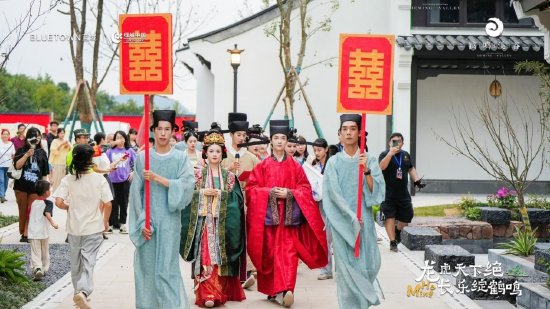 关注龙虎天下绝,长乐绽鹤鸣。10月1日下午,鹰潭市文旅新业态龙虎山鹤鸣溪谷‘长乐里’商业街盛大开街。“龙吟虎啸”、“天官赐福”、舞狮表演、水上婚礼以及大型烟花秀等精彩活动吸引了近万名游客体验参与,在国庆当天拉开了一场喜气洋洋的国潮游园会序幕。