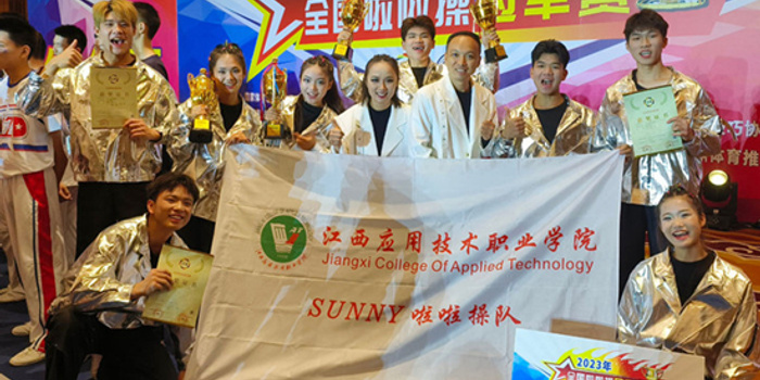 江西应用技术职业学院sunny啦啦操代表队由社会学院院长李和杰领队,肖随龙、黄河为教练员,学生运动员为社会学院学生肖江琴、李美玲、李家鑫、吴林鑫、邓祎祥、胡裕锋、温建兵,汽车学院学生蒋时拓。此次冠军赛吸引了全国219支优秀啦啦操队,3625名选手参加,展开了七个公开竞赛组别的角逐,观赏性极高。比赛中,江西应用技术职业学院分别获得成人乙组双人舞蹈啦啦操金牌(肖随龙、黄河)、青年丙组自由舞蹈啦啦操金牌、青年丙组街舞啦啦操金牌、青年丙组双人街舞啦啦操银牌和青年丙组双人花球啦啦操第四名,成绩的获得充分展示出学校师生的实力与风采。