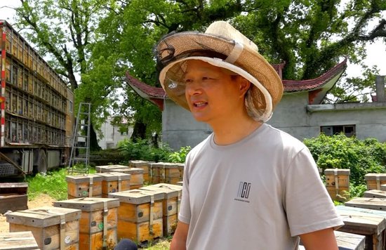 蜂农沈福祥说:“今天感谢科技特派员来指导我们的养蜂工作,给我们养蜂技术上有很大的提升,我以后会按照养蜂特派团的技术指导来提高我们的蜂蜜产量和质量,让广大消费者吃到更好的蜂蜜。”