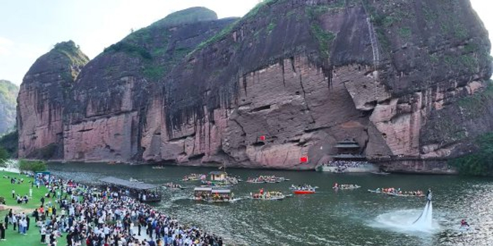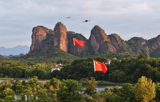 龙虎山景区:无人机“托举”五星红旗,绽放最美风景