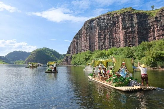 针对3-12岁孩子的亲子家庭,龙虎山精准聚焦 “安全 + 舒适 + 教育” 三重需求。其森系竹筏漂流 “绿野仙踪” 版,特意放慢速度避免孩子颠簸受惊;顶部透气遮阳布隔绝强光,喷雾装置既能将筏内温度维持在舒适区间,又能营造朦胧意境,让游客尽享碧水之上的空调房式凉爽。同时,竹筏两侧绿植藤蔓与两岸青山呼应,小朋友可在自然野趣中观察鸟类、植物,实现 “轻量化研学”,让亲子游告别 “家长累、孩子闷”,成为 全家共成长的温馨时光。