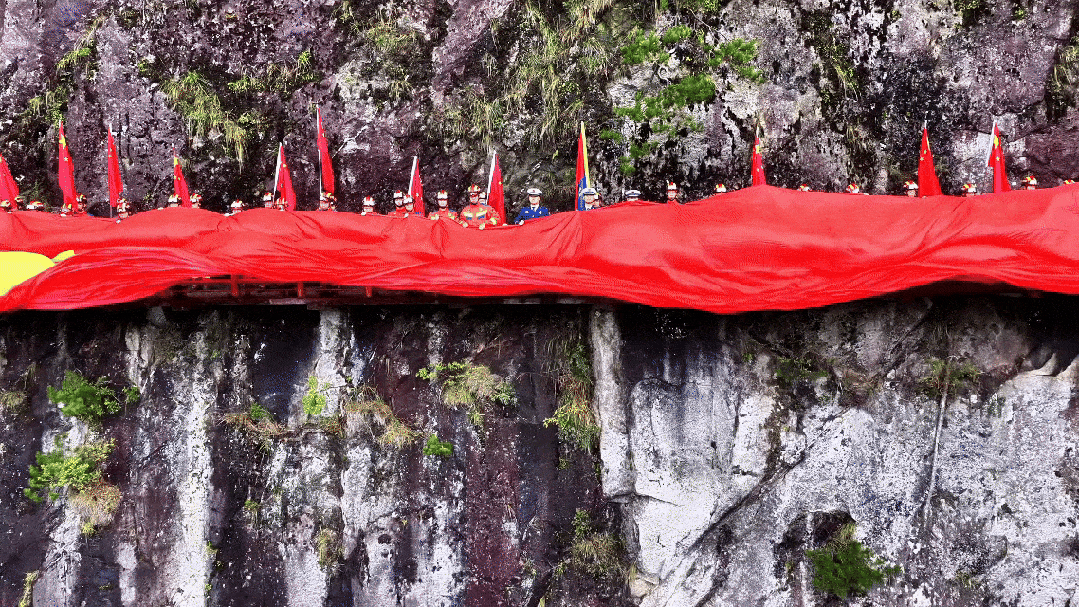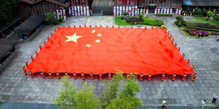 共同举行“火焰蓝遇见中国红”护旗仪式