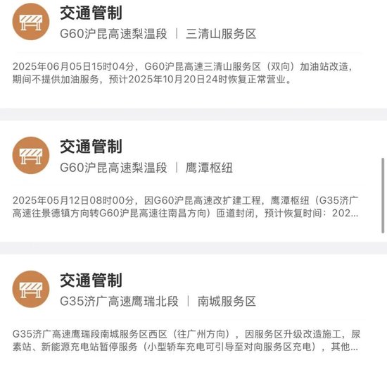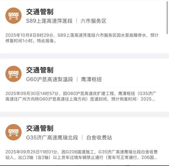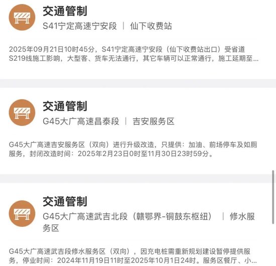 以上路况信息将在高德、百度地图导航进行同步引导,给您的出行带来不便,敬请谅解!