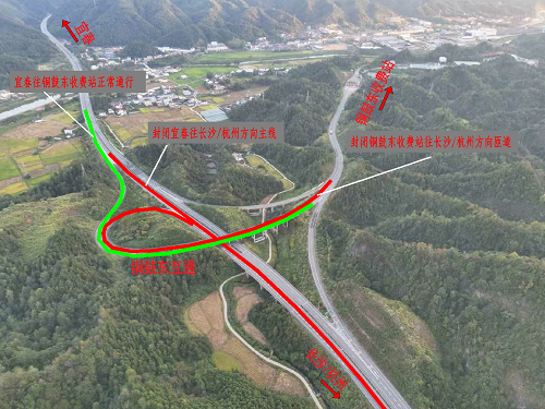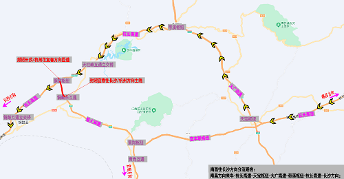 绕行路线:南昌方向来车-杭长高速-天宝枢纽-大广高速-带溪枢纽-杭长高速-长沙方向。