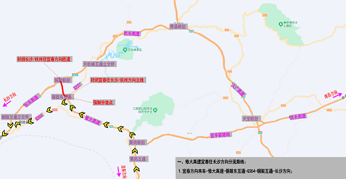 绕行路线:宜春方向来车-修大高速-铜鼓东互通-G354-铜鼓互通-长沙方向。