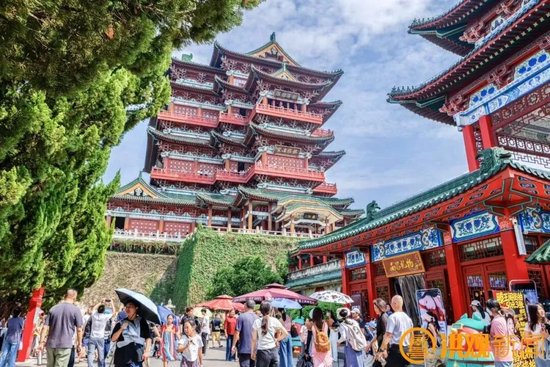 10月3日下午,南昌融创乐园《梦回洪州》大型国风实景演出入口处,来自武汉的李霞正由女儿帮忙佩戴古风发簪,准备开启一场“穿越之旅”。作为近年新推出的国风实景项目,《梦回洪州》已成为游客口中的“必打卡”项目。李霞正是被社交媒体上的推荐吸引,特意将其列入旅游行程。