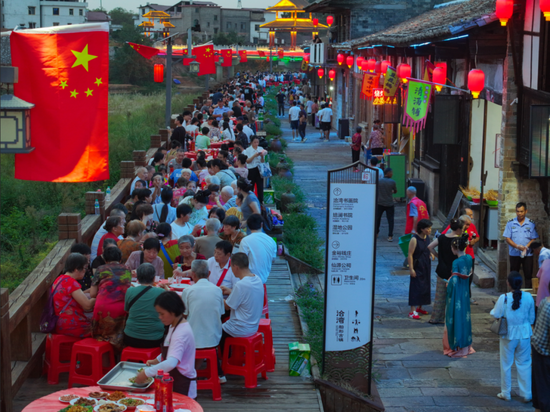 乐安流坑古村以首届“文人江湖·古村奇谈”沉浸式演绎文化节为核心,联动“乐安好物”特色市集,打造沉浸式文旅消费新场景,吸引众多游客参与互动,推动文旅经济活力持续攀升。景区同步推出的“乐安好物”市集,集结竹产品、农特产品等,成为游客“打卡”新热点。竹笋衍生食品展销区前,游客争相品尝购买,现场弥漫着阵阵清香。双节期间,全县接待游客人次和旅游花费预计同比增长16.4%和14.8%。