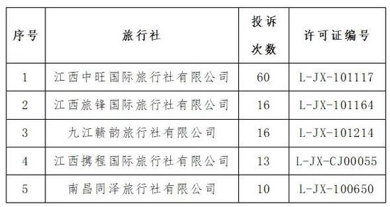 关注江西省文化和旅游厅公布2025年第三季度投诉量达到10件以上的旅行社名单。