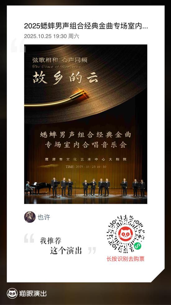 蟋蟀男声组合:怀旧金曲《故乡的云》10月25日晚19:30 精彩上演【全球学子嘉游赣 奇绝鹰潭逍遥游】