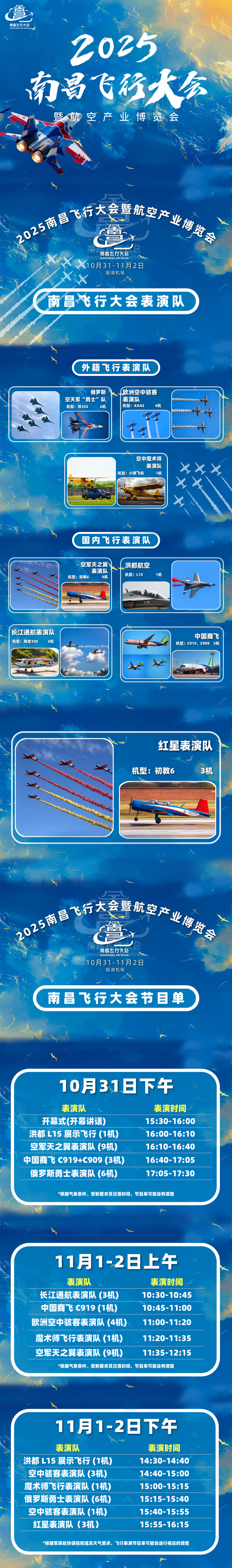 值得一提的是,空军航空大学“天之翼”飞行表演队与俄罗斯“勇士”飞行表演队两大明星阵容将首度亮相南昌飞行大会。戳划线文字了解更多详情↓