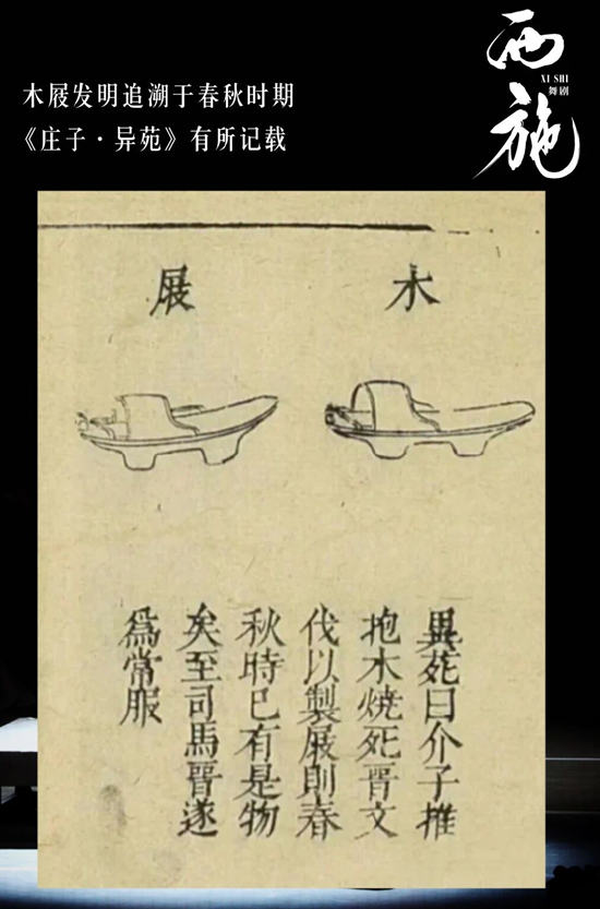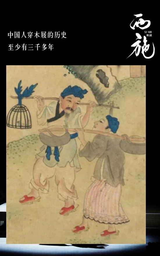 《西施》中的“响屐舞”还向观众们科普了出现在李太白诗中“脚著谢公屐,身登青云梯”——木屐,这一传统物件。