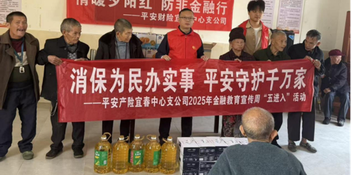 活动当天,平安产险宜春中心支公司工作人员与敬老院老人共同展开“消保为民办实事 平安守护千万家”主题横幅,现场洋溢着温馨的氛围。工作人员为老人们送上了食用油、纯牛奶等生活慰问品,让老人们切实感受到关怀与温暖。