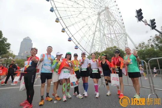 更令人感动的是普通市民的自发参与。在赛道沿线的爱国歌曲加油站,人们用歌声为跑友助威,折射出强烈的地域自豪感;4000多名大学生志愿者全程为跑友提供贴心服务;沿途周边19个文艺展演点的精彩表演与自发涌上街头的市民交织成一片热情的海洋,既增强了本地市民的归属感,也让外来游客变为“沉浸式体验者”。这些看似微小的参与,汇聚成整座城市温暖的人文关怀。