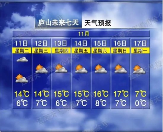 我省地区最低气温低至个位数庐山最低温更是低至0℃。