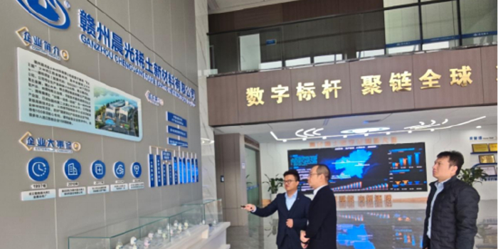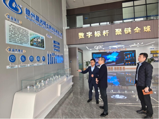 在赣州晨光稀土新材料有限公司,调研组一行深入了解其稀土化合物、金属制品的生产经营与市场布局。针对企业经营周转及国际业务拓展中的资金需求,阮晓表示,江西分行将充分发挥跨境金融专业优势,为企业提供定制化信贷支持方案,助力企业提升产品附加值,推动稀土产业向价值链高端迈进。