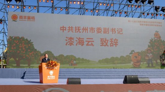受市委书记范小林、市长胡剑飞委托,漆海云代表市委、市政府向百忙之中莅临出席的各位领导、各位嘉宾表示热烈欢迎!向长期关心支持抚州发展的社会各界朋友,致以衷心感谢和崇高敬意!他指出,党的二十届四中全会站在建设农业强国的战略高度,明确提出“加快农业农村现代化,扎实推进乡村全面振兴”的重要举措,为新时代农业高质量发展擘画了清晰蓝图。当前的抚州,农业发展正处于从“量的积累”向“质的飞跃”关键时期,比以往任何时候都更需要转型升级的引领、品牌力量的驱动。本次节会以“品牌升级”为主题,以“三产融合”为抓手,精准契合全会“提升农业综合生产能力和质量效益”的要求,为产业发展搭建了宝贵平台。衷心期盼各位专家学者发挥专业优势,围绕蜜桔高质量发展建言献策;诚挚邀请各位企业家关注抚州、投资农业,在农文旅融合等领域深挖合作商机;也希望各位经销商朋友继续当好南丰蜜桔的“推广大使”,让这颗“甜蜜果”香飘更远、惠及更多农户。