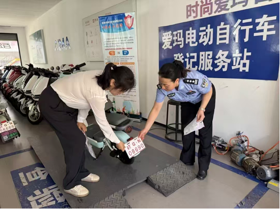 彭泽县交管部门推进车管服务端口前移,由“线下办”转向“一键办”,将车管业务全面嵌入电动自行车销售环节,依托“赣服通”平台实现数据高效互联,授权商户可提前完成车辆信息采集与预查验,消费者购车后系统自动核验、实现当场发牌,成功打造群众“身边的微型车管所”。同时, 构建“政企协同、一站服务”新型管理格局,由“来回跑”转向“跑零次”,严格资质审核并授权合规企业,群众仅需携带身份证和手机至挂牌“带牌销售”商户购车,即可一次性办结“选车、交易、登记、上牌”全流程。