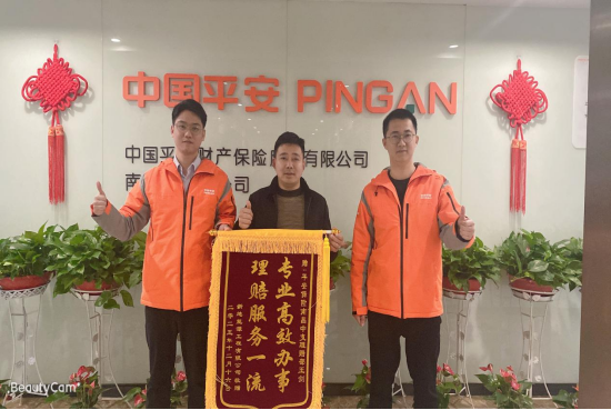 客户对平安产险的理赔服务给予了高度评价,并特意送来锦旗以表感谢。锦旗上“专业高效办事,理赔服务一流”生动刻画了理赔人员不畏艰辛、保障客户利益的敬业精神,这些真挚的话语,凝聚着客户对平安产险服务的深度信任与肯定。
