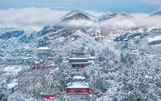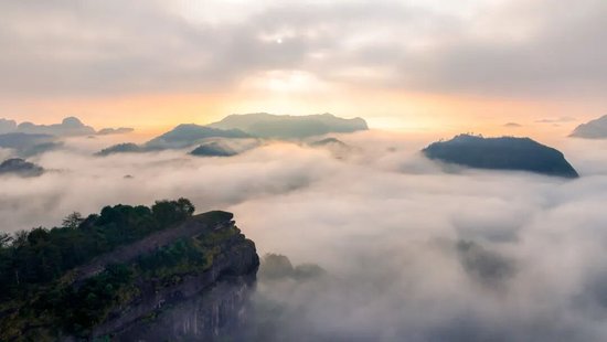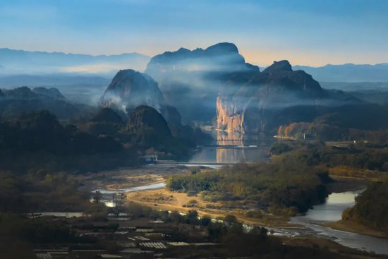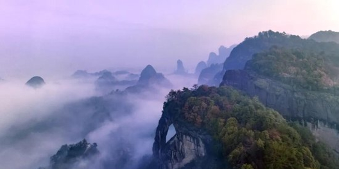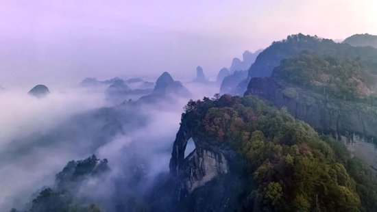 乳白色的雾气在赤壁丹崖间缓缓流动
