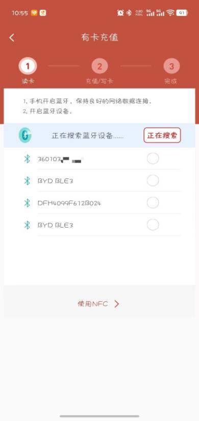 2、 “有卡充值”支持蓝牙、NFC等多种充值方式,操作简单方便。