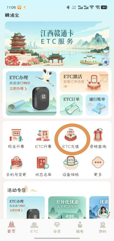 1、 下载“赣通宝”APP,首页选择“ETC充值”。