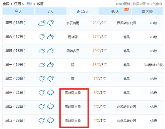 抚州将迎来连续三天的雨夹雪天气:
