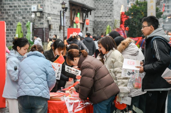 本次活动特别设置了“集五福”游园环节,现场通过设置“金融知识年货铺”,将金融知识与非遗拓印、写福字、猜灯谜、飞花令、投壶等传统民俗活动相结合,工作人员向现场消费者发放“金融消保通关文牒”,消费者集齐“反诈福”“防非福”“征信福”“权益福”“理性福”五类福卡获取金融知识,活动反响热烈、年味满满。