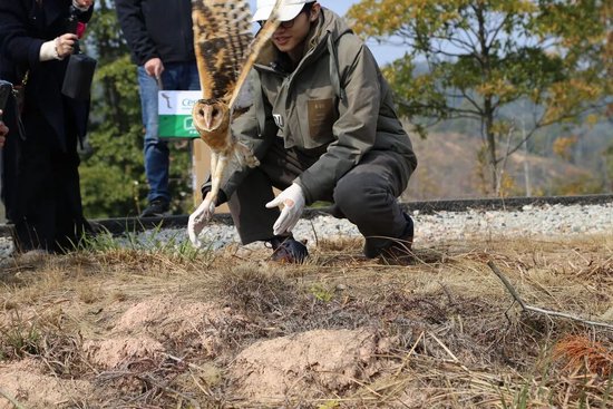 上午10时,峰山深处。工作人员依次打开运输箱。蛇雕率先振翅,在空中划出有力弧线,很快消失在林海之中;草鸮悄无声息地滑向密林深处,回归它主宰的夜色王国。随后,画眉、夜鹭、八哥等相继振翅而起,鸣叫着飞向属于自己的自由天地。