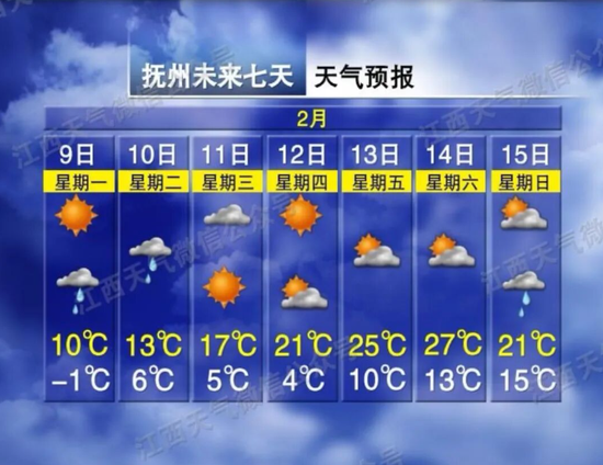 以抚州天气为例14日最高温将直冲27℃但最低温仅13℃早晚温差达14℃
