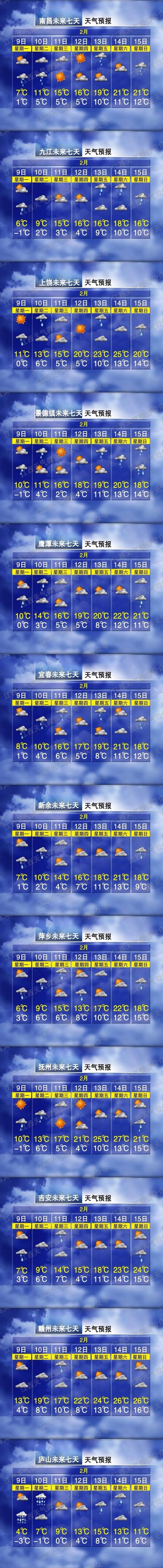15日开始全省有一次降温、降水天气过程其中赣北部分地区有中雨
