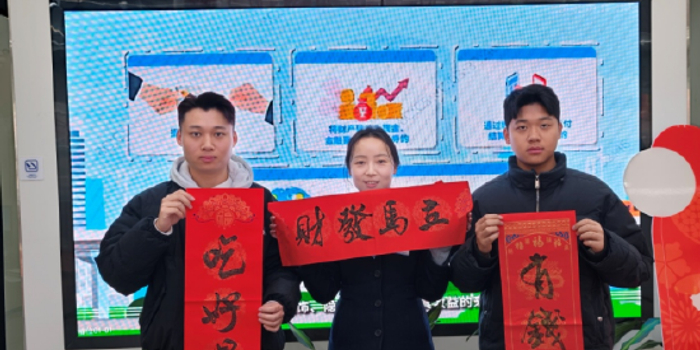 工作人员写好对联后将其送给客户作为新年礼物,同时对客户进行新春采访,为其送上佳节祝福,客户亦回赠,在互动中金融暖流已悄然流入心间。