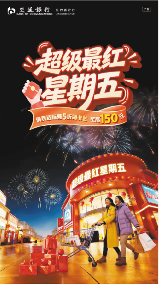 随着春节脚步临近,正是逛街购物、亲友小聚的好时候。不少人都在精打细算,想把钱花在刀刃上。交通银行江西省分行全新升级的超级最红星期五活动暖心上线,为春日消费加满动力。