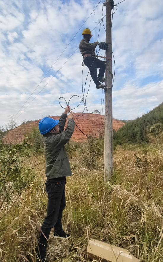 攀密林、勘线路、熔光纤、固缆线。连续三天,这支平均年龄近50岁的抢修队伍在湿冷山风里连轴转。朱定其手上的血泡破了又磨,工服被汗水浸透,没有一个人喊停。最终,他们新建光缆2公里、整修杆线1.6公里,不仅抢通了网络,还完成了一次“通信升级”——光纤宽带、固定电话、网络电视全部覆盖。