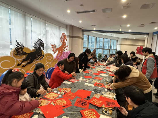 鹰潭市博物馆推出“木版年画精品展”“马文化图片展”等主题展览,并开展拓印、珍珠画、毛毡小马等非遗手作体验,让文物“开口说话”。市文化馆推出剪纸展、非遗工坊、线上灯谜竞猜等活动,吸引亲子家庭在纸墨间重温旧时年味,让非遗突破时空限制,融入日常文化生活。社区层面,送春联、扎花灯等活动深入街巷,书法爱好者挥毫泼墨,志愿者为独居老人上门送“福”,让非遗成为连接邻里的温情纽带。