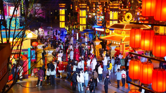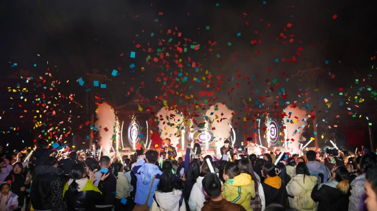 如果说龙虎山的夜是仙侠与古韵的交织,那鹰潭方特东方神画的夜,则是青春与传统的炽热相拥。三大街景庙会热闹开市,手作好物、特色小吃轮番登场;祈福大巡游队伍中,鱼龙灯舞蜿蜒游走,民俗方阵踏歌而行;“新年光影烟花秀”与漫天星光交相辉映,带给游客一场难忘的新春视觉震撼。各类夜场活动吸引游客接踵而至,园区内车水马龙,人流涌动。