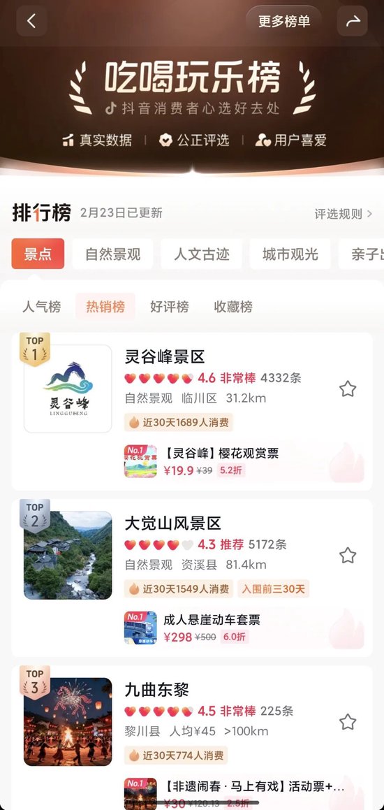 春节期间,灵谷峰景区凭借超高人气强势登上抖音景区排行榜前列,相关话题播放量持续飙升,全网曝光量突破千万级,话题互动量、打卡量稳居抚州景区第一梯队!