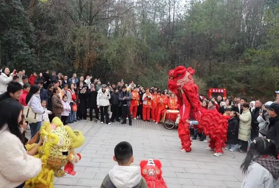 景区以“灵谷樱春,马到福来”为主题,打造沉浸式新春盛宴:舞龙舞狮巡游,锣鼓喧天,金狮腾跃,年味十足!