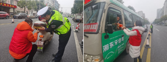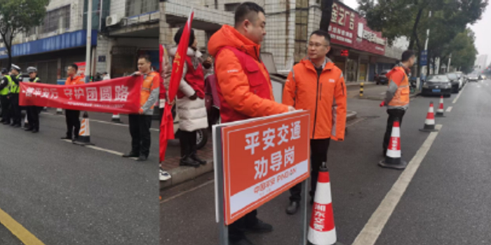 活动现场,“平安交通劝导岗”标识牌醒目立起,“一路平安行 守护团圆路”的红色横幅迎风舒展,交警的“荧光绿”与平安志愿者的“守护橙”交相辉映,成为街头巷尾最亮眼的平安底色。
